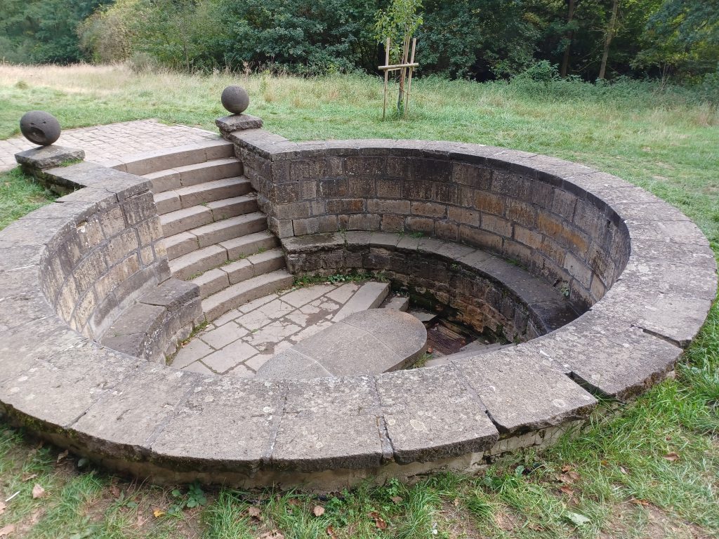Je start op parkeerplaats ‘Erlenmühle’, westelijk van het dorp Mendig. Vandaar loopt een 750m lang wandelpad door het mooie dal van de Kellbach naar de ‘Erlenbrunnen’, waar het startpunt is van de Vier-Berge-Tour. Je zou je kunnen afvragen wat ‘Erlen’ eigenlijk betekent. Zeer waarschijnlijk zijn dit ‘elfen’ en niet ‘elzenbomen’. Een beetje hetzelfde vertaalprobleem als bij het beroemde gedicht/lied ‘Erlkönig’ (elfenkoning) van Goethe en Schubert. In de Erlenbrunnen kun je desgewenst veilig koel bronwater tappen. De smaak is wat vreemd – er wordt op een verklarend bord voor gewaarschuwd! – en lijkt op Spa-rood zónder prik, vonden wij.