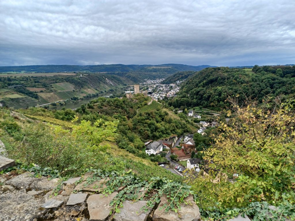 Uitzicht vanaf de Matthiaskapel op het dal van de Moezel en Kobern-Gondorf