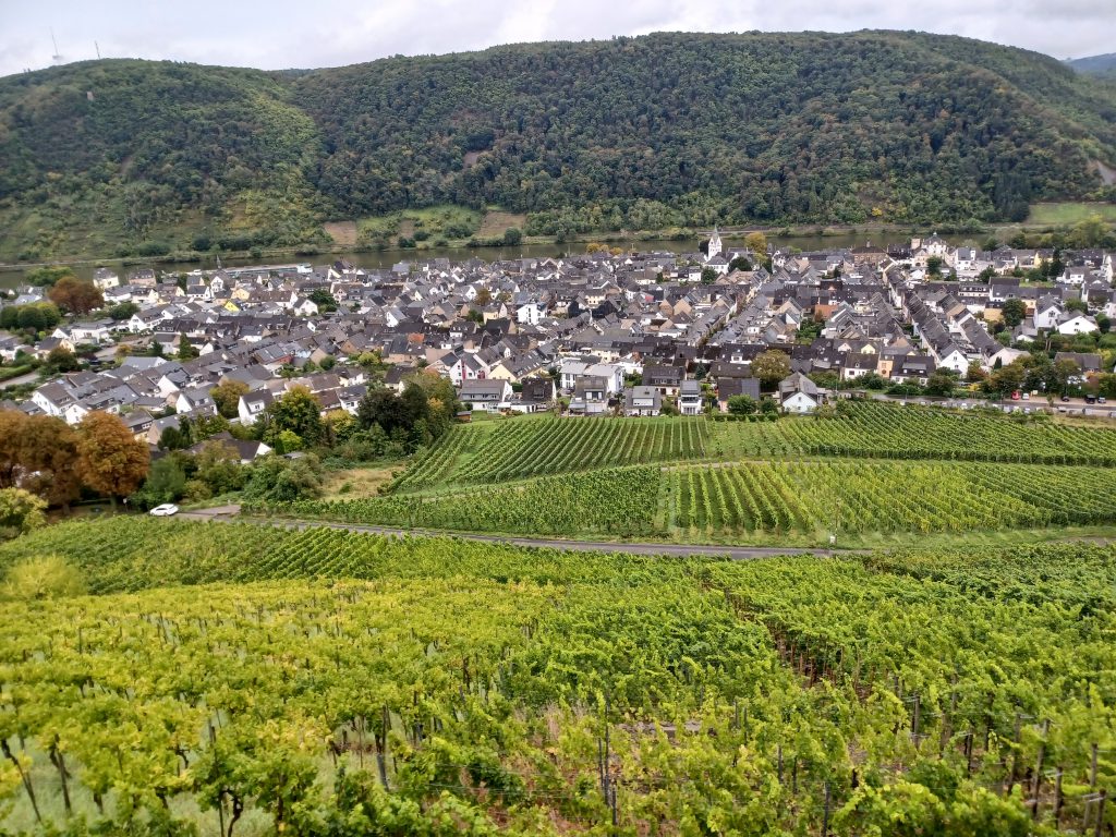 Tenslotte een fraai uitzicht op Winningen tussen Moezel en wijngaarden